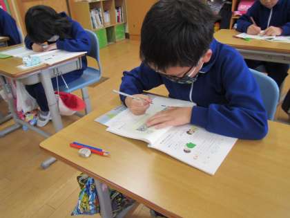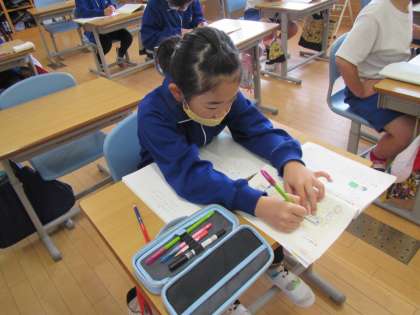重要な文章にサイドラインを素早く引く子どもたち。