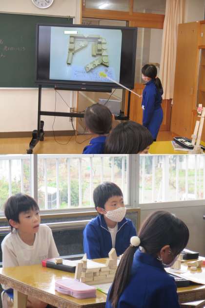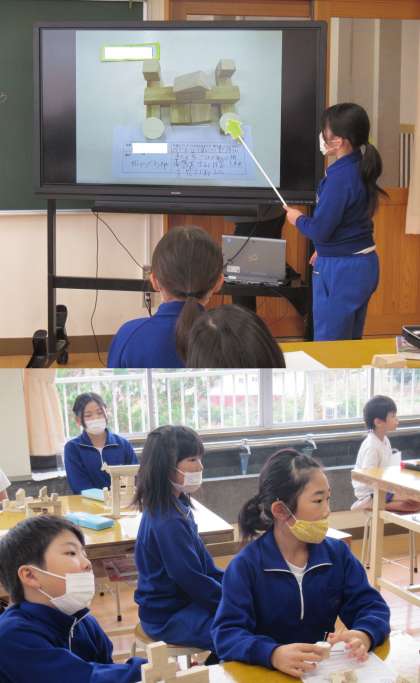 お互いの作品のよさを学び合う子どもたち。