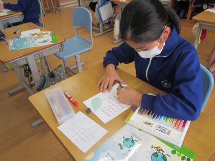 先日見学した「コミュタン福島」の皆さんに、お礼の手紙を書く5年生。