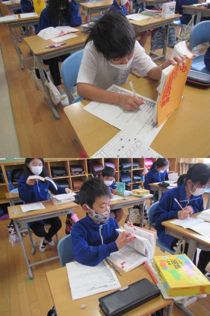 今日も国語辞典を使って慣用句の意味調べ。