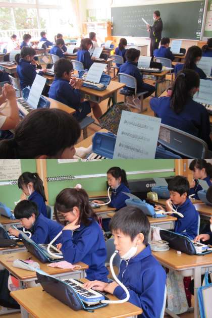 まずは、校歌の演奏がしっかりできるようにします。