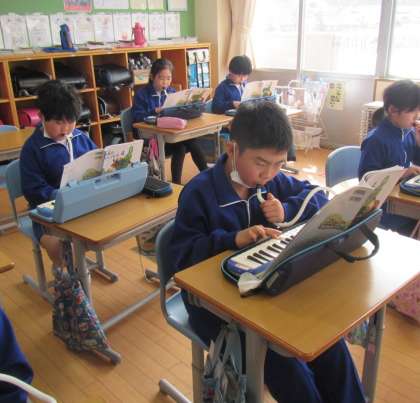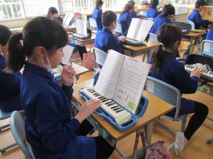 4年生の音楽科の授業。