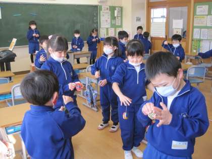 自分だけのヨーヨーが完成しました。早速練習開始です。