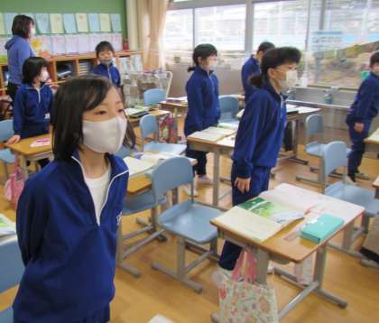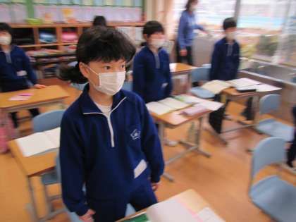 楽しく朝の歌を歌う2年生。