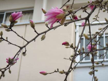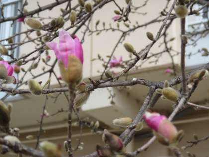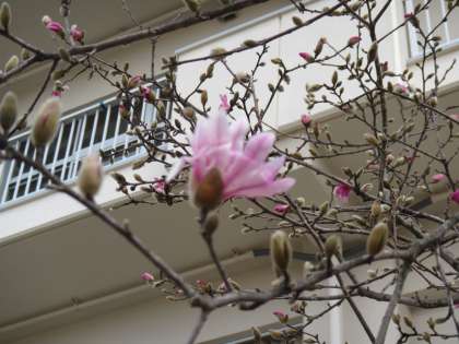コブシが二分咲きぐらいになりました。