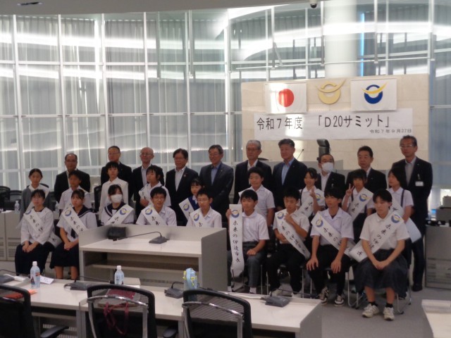 9月28日(土)に、伊達市D20サミットが開催されました。子どもたちの声を聴き、社会参画の機会をつくることを目的に行われているものです。市内の各小中学校代表児童生徒が参加し、議場において市長さんを前に意見発表を行いました。「伊達っ子の誓い」に基づき、健康づくりに向けて取り組んでいることや伊達市のじまん・PRについて意見を発表しました。本校からは5年生代表児童が参加しました。自分の経験などに基づいてしっかりと意見を発表することができました。
