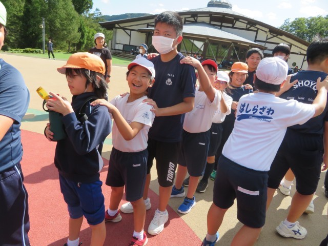 秋晴れの青空の下、児童生徒交流会があり、本校からも7名の子どもたちが参加しました。保原方部の子どもたちと交流するとともに、霊山こどもの村で体験活動をしてきました。笑顔いっぱいで楽しく活動を進めてきました。