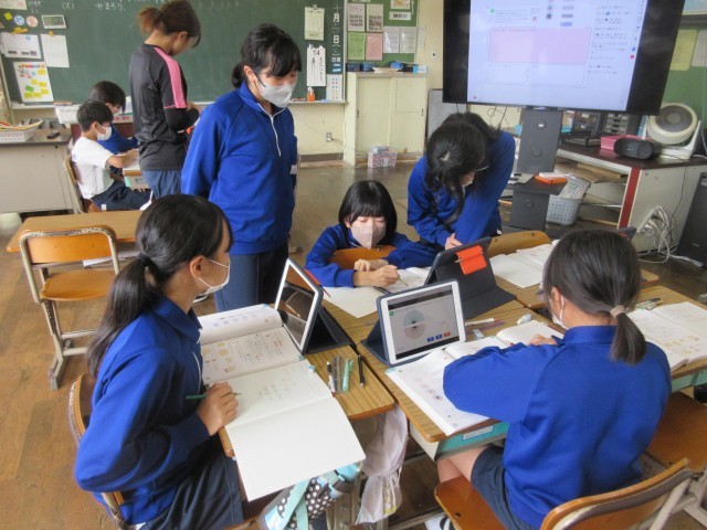 校内研修の成果を共有しながら、子どもたちに主体的な学習の姿勢が身につくよう学習に取り組んでいます。
