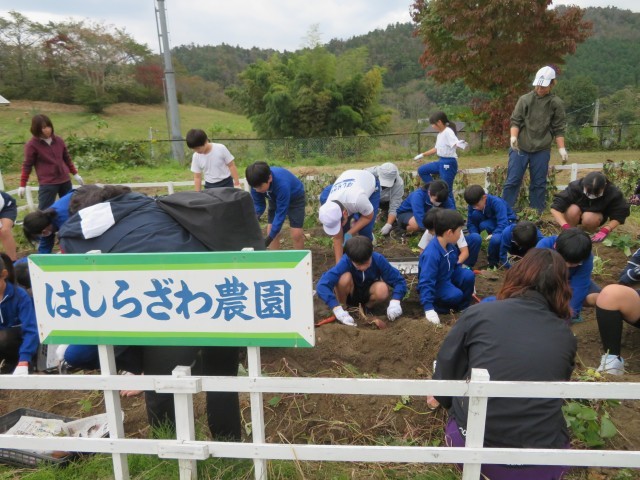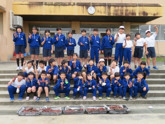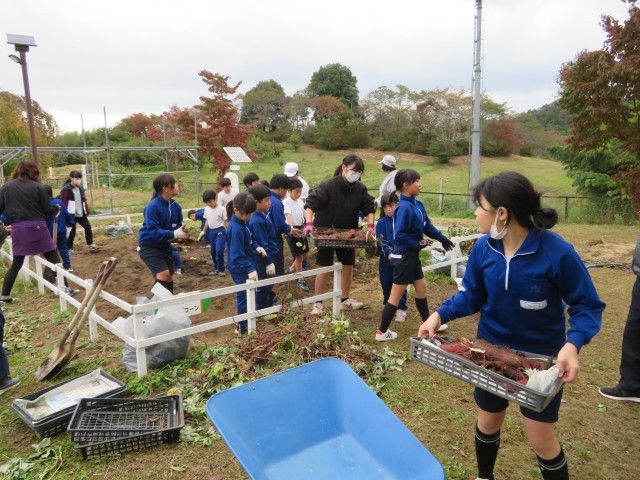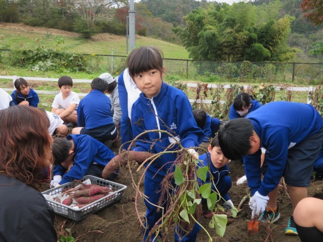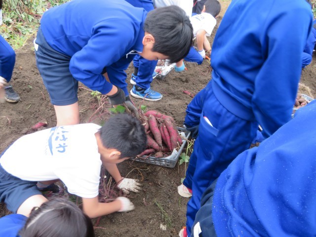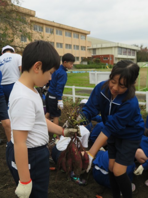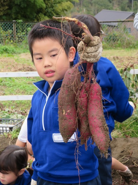 学校の農園で、みんなで育てたサツマイモを収穫しました。予想以上の収穫にみんな大喜び!収穫したおいもは収穫祭で焼き芋にして食べたいと思います。