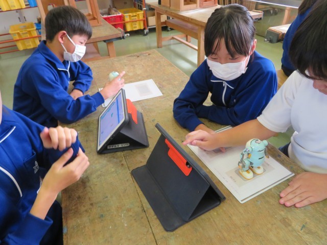 11日(火)に、5・6年生はリビングロボット社の方にご協力をいただき、ロボットプログラミングの学習をしました。ロボットを動かすためのプログラミングの進め方について教わりながら楽しく学習を進めていました。
