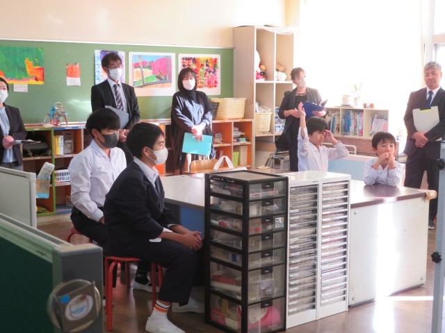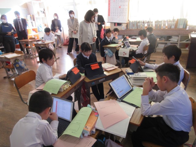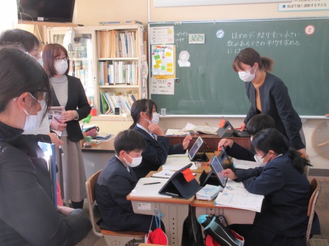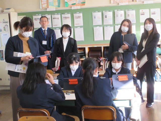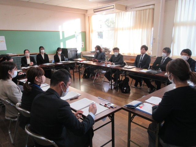 市の学力向上推進事業の一環で、松陽中学校区の3校の先生にお越しいただき授業を参観いただきました。参観後の分科会では、子どもたちに育てていきたい姿やそれに向けての取組みを共有したり、情報交換をしたりして地区で連携した取り組みについて話し合いを深めることができました。