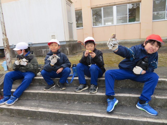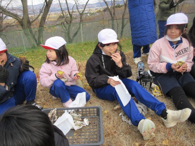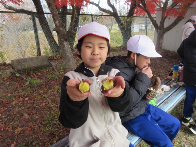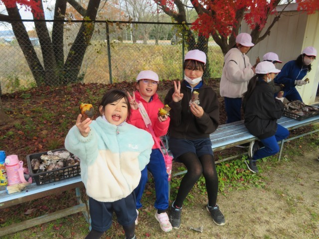 1校時に準備をした焼きいもが3校時にはできあがりました。ほくほくの焼きいもおいしいです。みんなでお世話をしてきたからこその格別のおいしさでした。