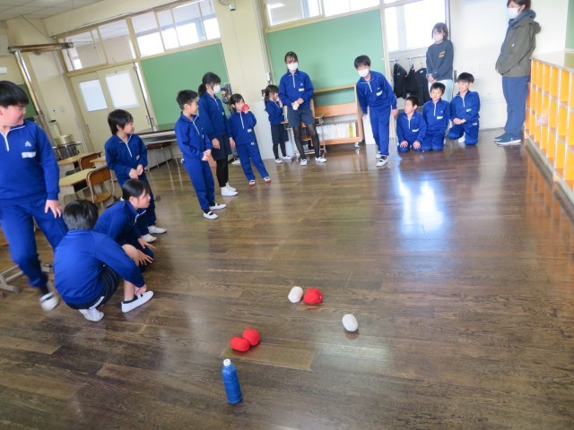 毎週火曜日のお昼の時間は「わくわくタイム」です。今日はファミリー班で仲良くボッチャをしたり、オリエンテーリングをしたり楽しそうでした。