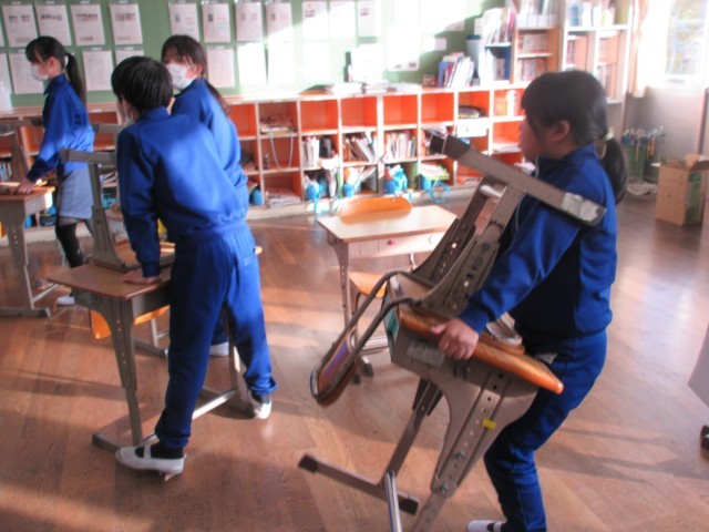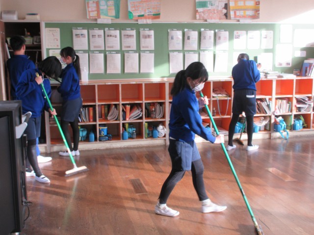 今年一年お世話になった教室にワックスをかけて新年を迎えるため、みんなで教室のお掃除を行いました。みんなで協力しててきぱきとお掃除を進める柱沢っ子たちです。