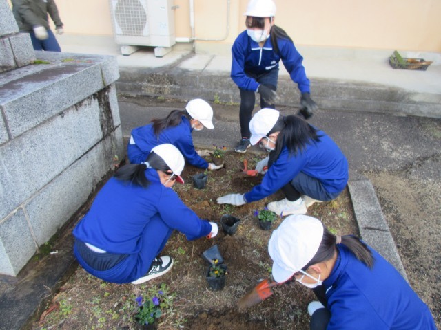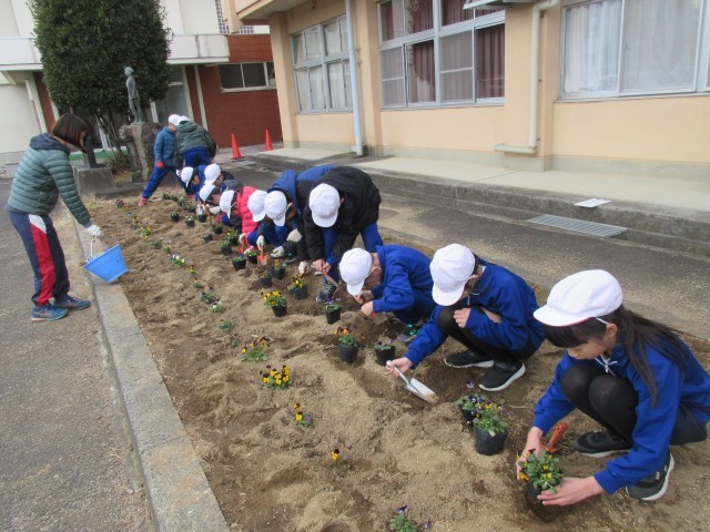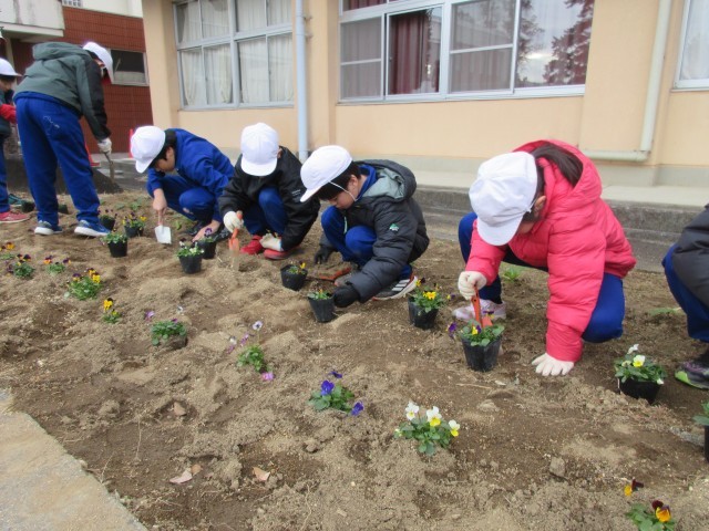 学校の花壇に花の苗を植えました。ビオラとツリガネソウです。冬の寒さに負けないで春には大きくきれいな花を咲かせてほしいと思います。