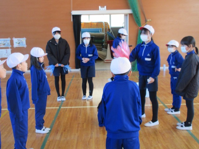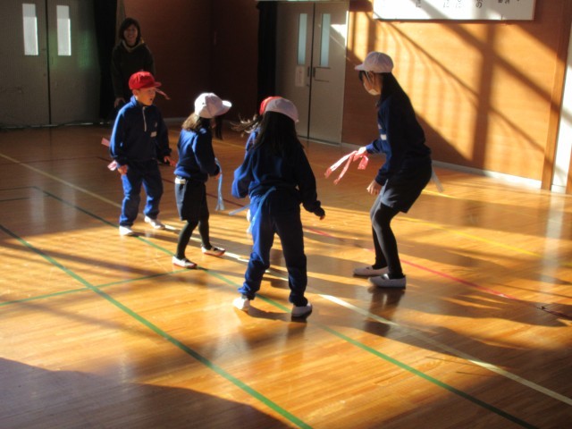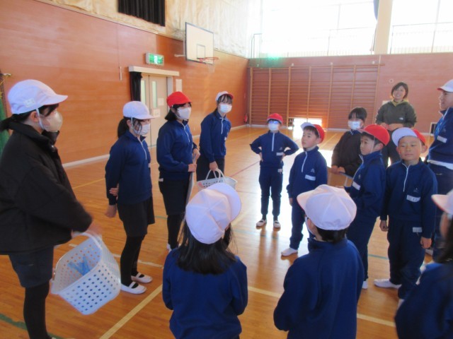 6年生が1・2年生と一緒に楽しい活動をしようと「合同しっぽとりゲーム」を企画してくれました。とても寒い日でしたがみんな元気に駆け回ってしっぽとりを楽しみました。進んで準備をすすめてくれた6年生のみなさん、ありがとうございました。