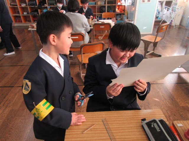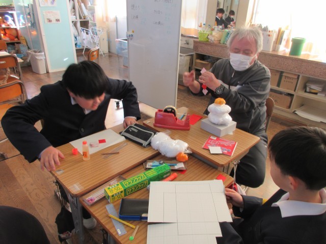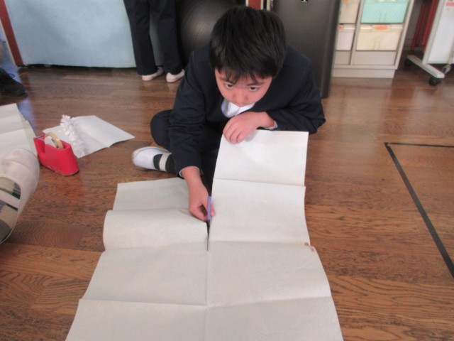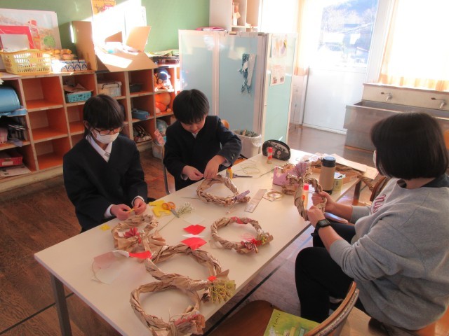 のびすくのみんなはみんなで分担協力してお正月飾りを作っています。作り方を確かめながら、きれいな飾りになるよう工夫して作っていました。