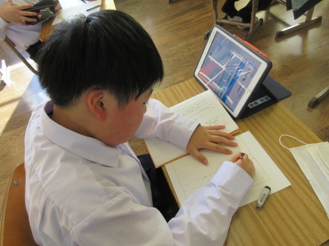 3・4年生は国語の時間に、「わたしの町のしょうかい」や「もしものときの備え」について、構成メモなどを考えて書いていました。自分の考えをもってしっかりと文章にまとめることはとても大事なことです。がんばってしっかり学習を進めていきましょう。