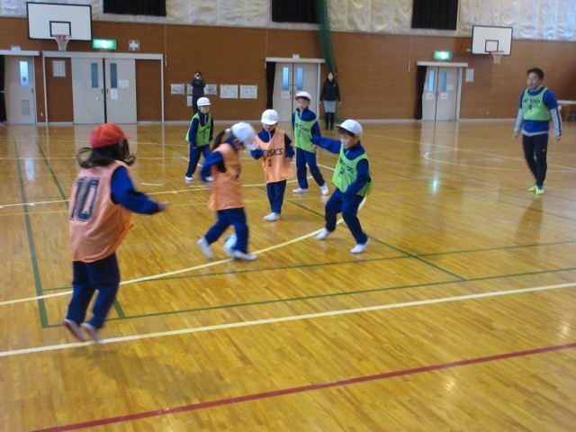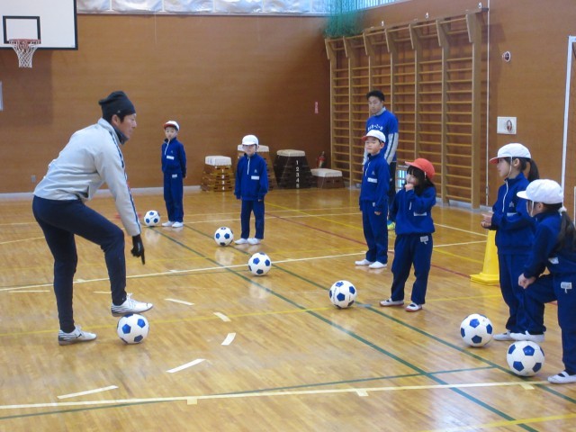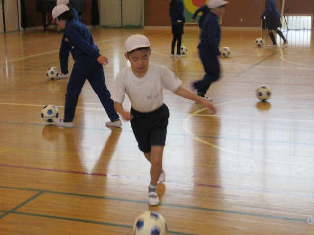 スポーツクラブSTARTLINの方々にご協力いただき、キッズプログラムサッカー教室を行いました。低・中・高学年それぞれに分かれて、コーチにボールの扱い方、ドリブル、シュートの仕方など教わりながら、楽しく学習を進めました。ミニゲームでは、担任の先生、2人のコーチも混ざってみんなで本気になってミニゲームを楽しみました。