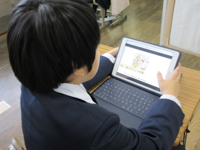 3・4年生は道徳の時間に、それぞれ「親切・思いやり」(3年)「礼儀」(4年)について話し合っていました。自分の経験と照らし合わせたりしながら、どう行動すればいいか考えていました。
