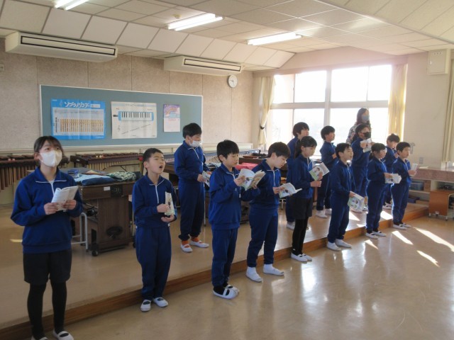 3・4年生は音楽の時間に、歌声をしっかり、はっきり届けるために、目線や口の開け方などにも気をつけながら、声を響かせる練習をしていました。