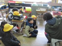 午年生まれの年男・年女の5年生が、豆のまき手になって各教室を回って節分集会を...