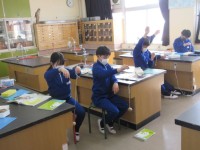 6年生の児童は、中学校への入学に向けて松陽中学校の体験入学に参加しました。中...