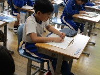 体力アップタイムに、伊達市児童陸上記録会のリレーの選手の6年生はバトンパスの練習をしました。