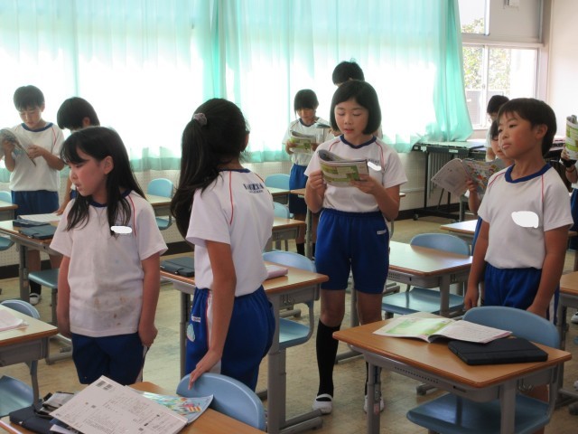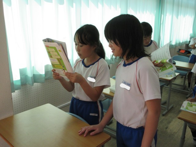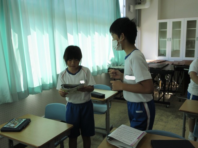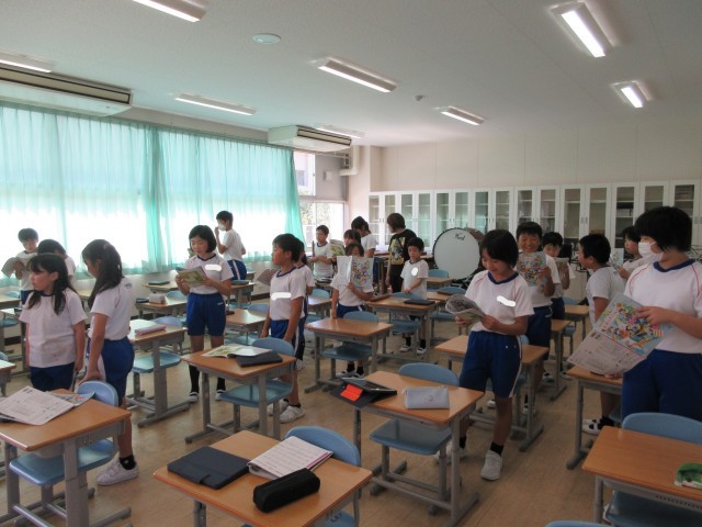 4年生の音楽です。「ゆかいに歩けば」の歌をうたいました。スタッカートや伸ばすところを上手に歌えているか、友達同士で聞き合いました。