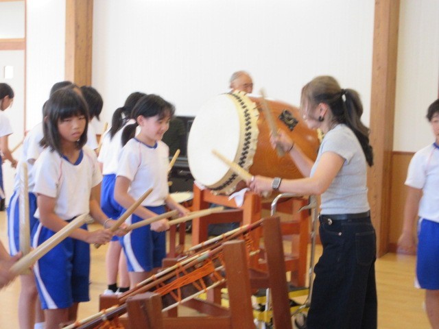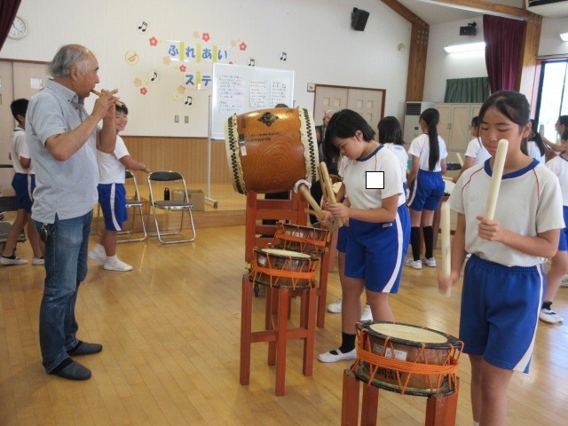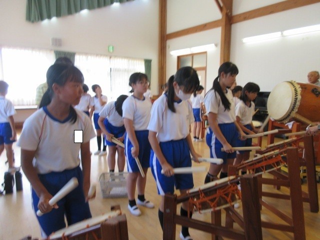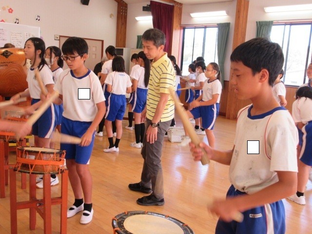 6年生が学習発表会に向けて、霊山太鼓の練習をしました。