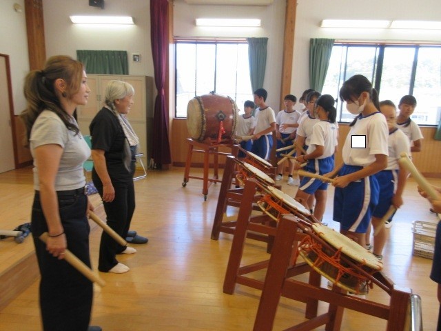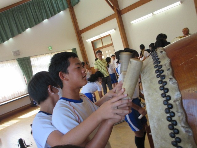 地域の方に教えてもらいながら、バチの叩き方や足の動かし方などを覚えました。