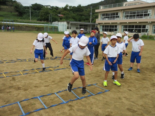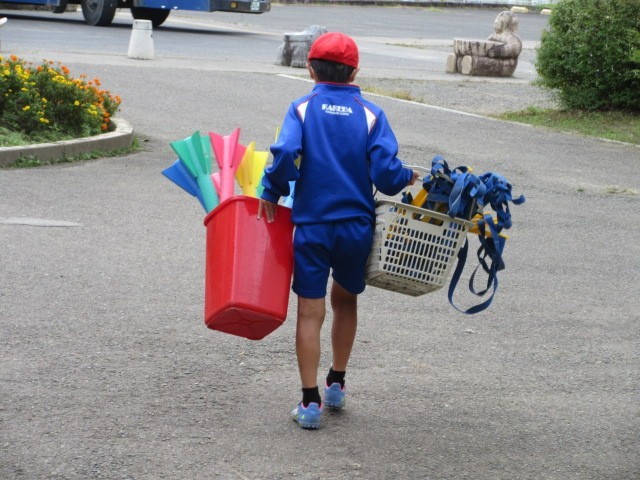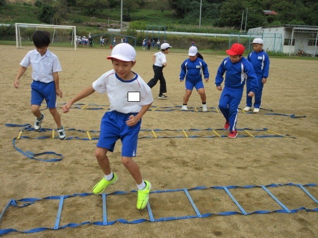 今日はちょっと曇り空。雨が降りそうな天気でしたが、子どもたちは体力アップに励みました。