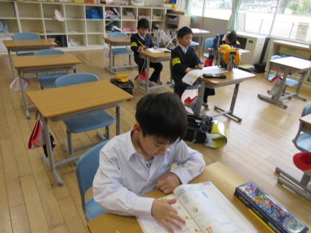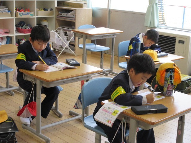 時計を見て、バスが来る時刻を確かめながら学習している姿がすばらしいです。