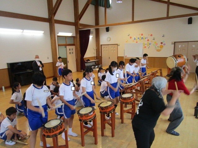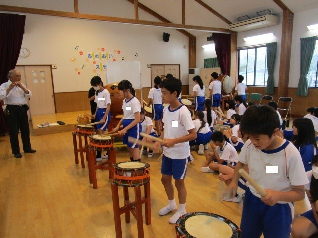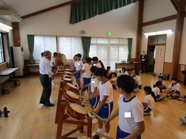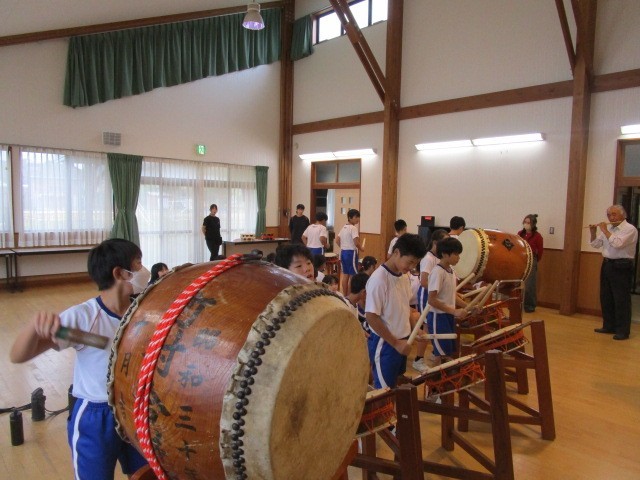 学習発表会に向けて、6年生は霊山太鼓の練習をしました。