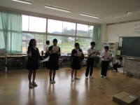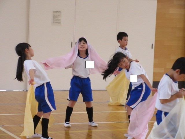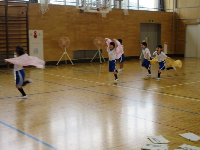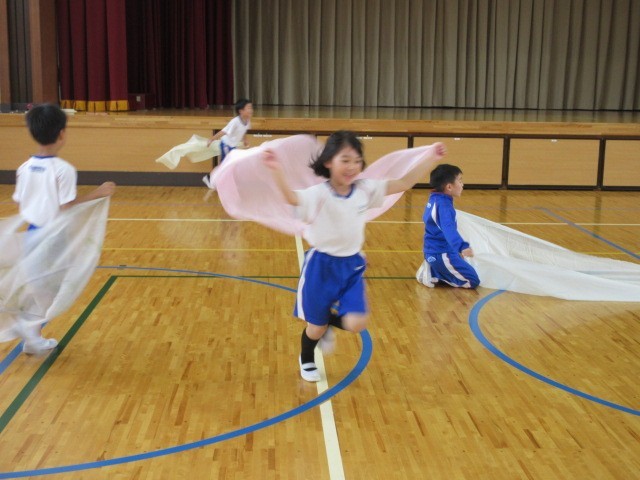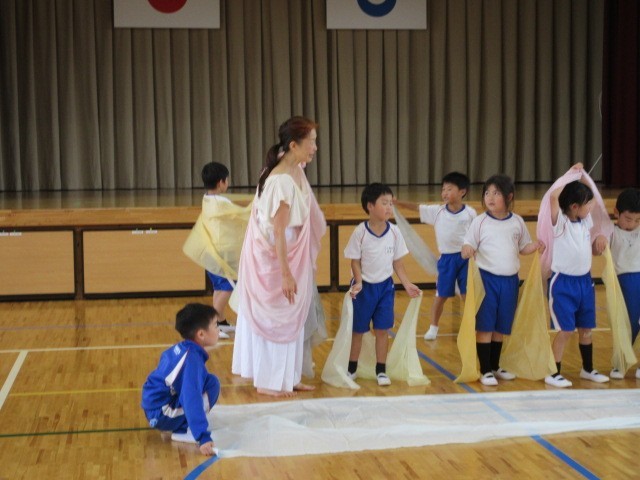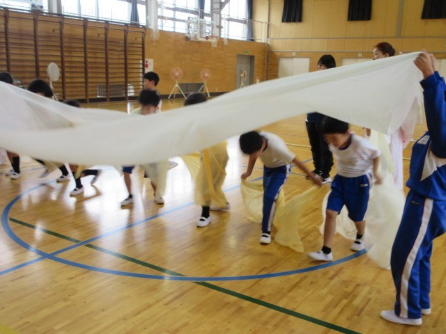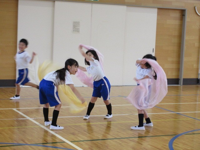 ミニコンサートの後の5校時目に、1年生が表現運動に挑戦しました。