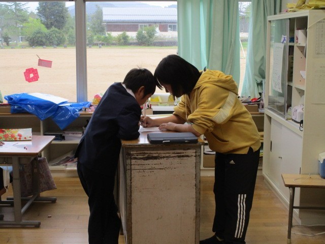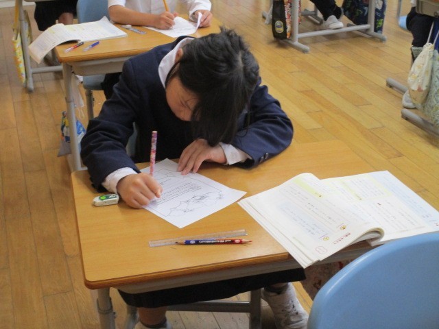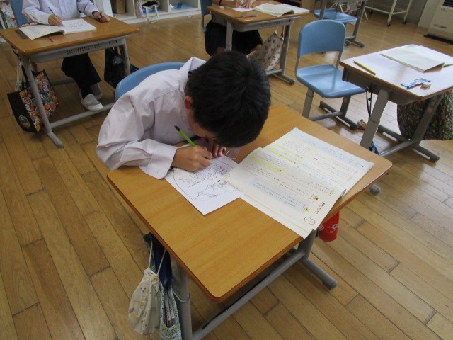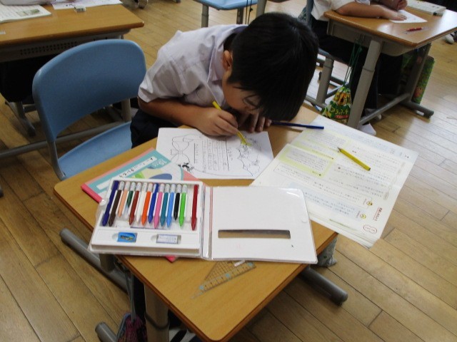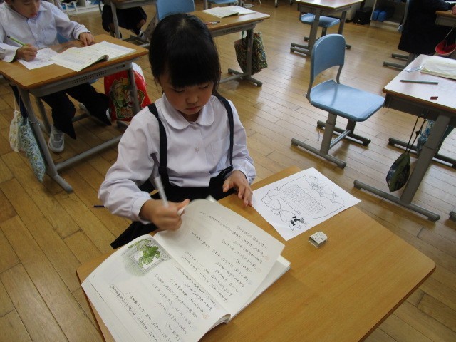 2年生の国語です。「おてがみ」というお話に登場する「がまくん」や「かえるくん」に向けて手紙をかきました。