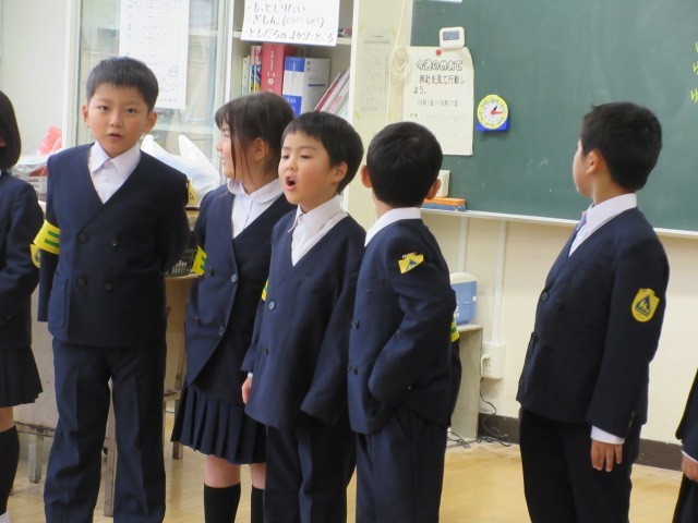 1年生が、はじめの言葉の練習をしています。