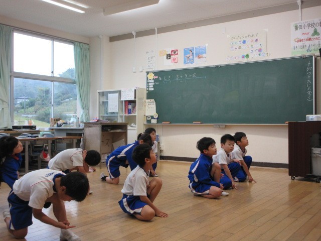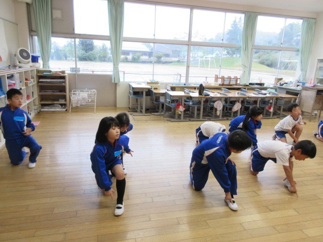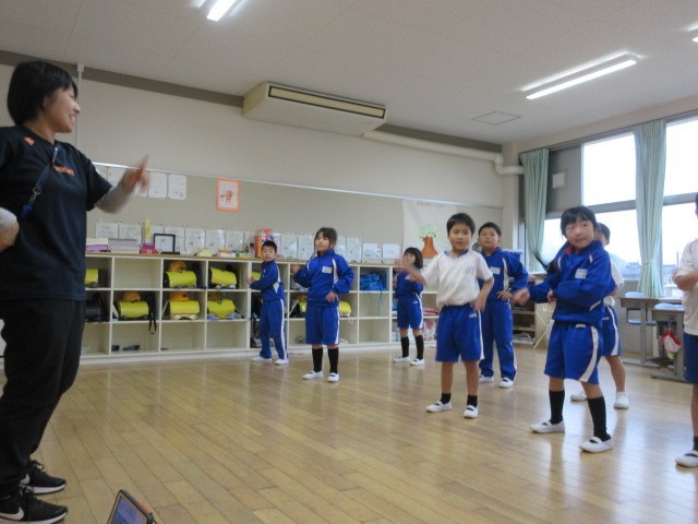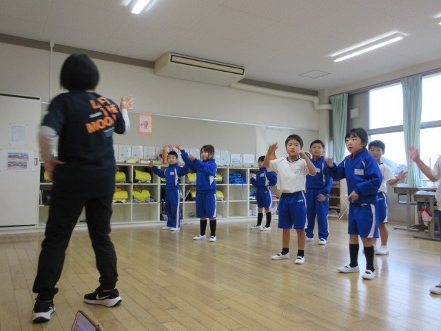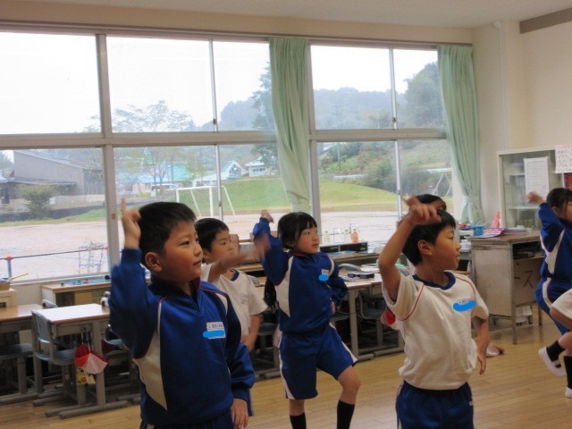 1年生は、学習発表会で披露するダンスの練習をしていました。