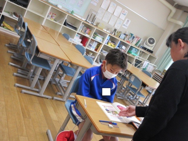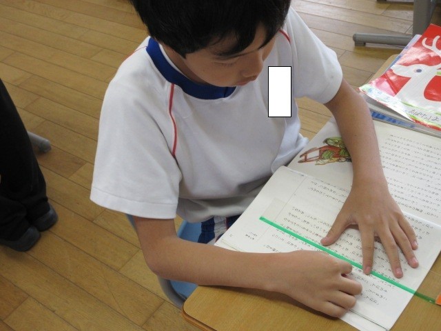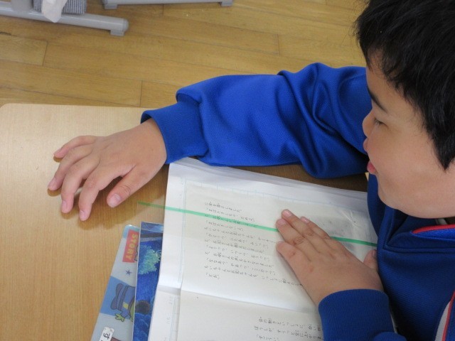 正しく読めるようにリーディングルーラーを使って教科書を読んでいます。