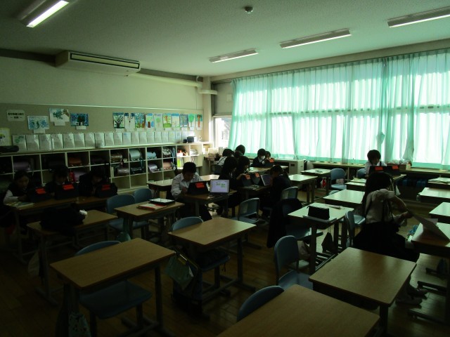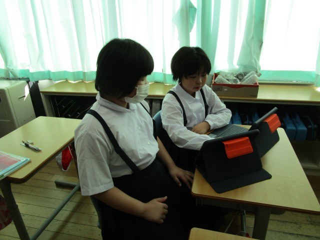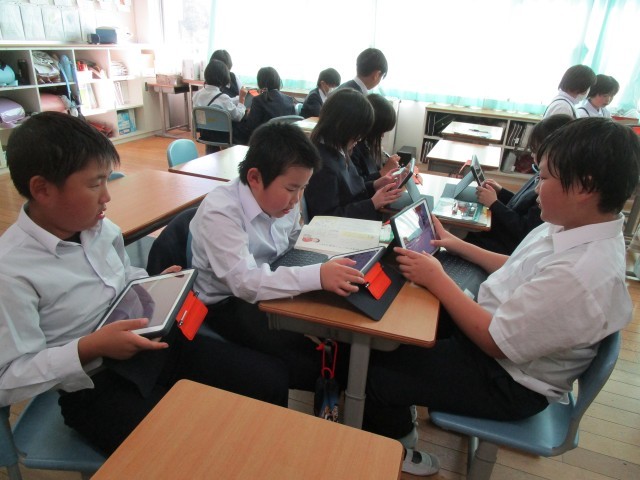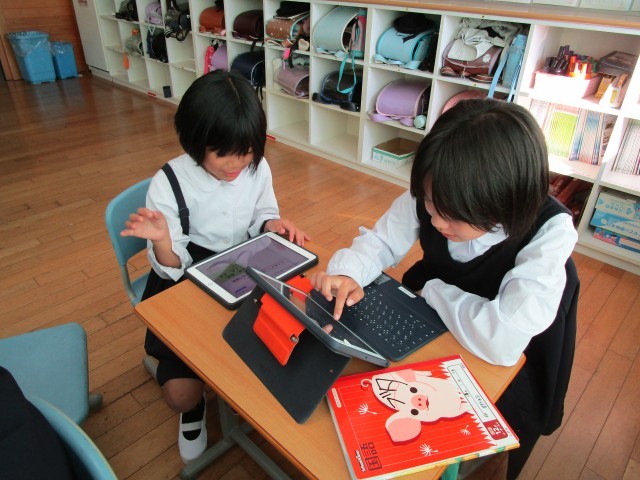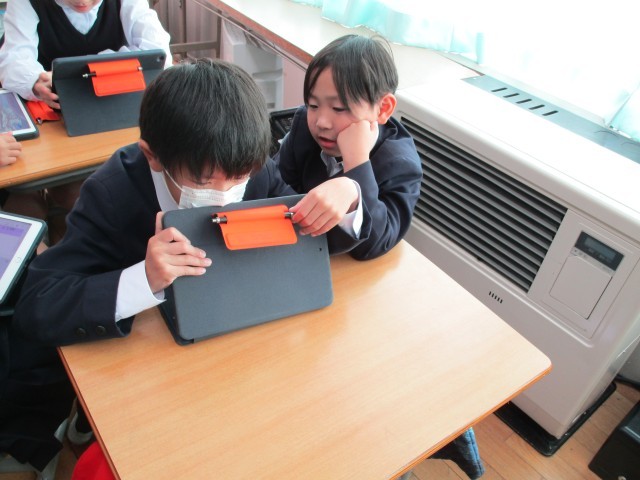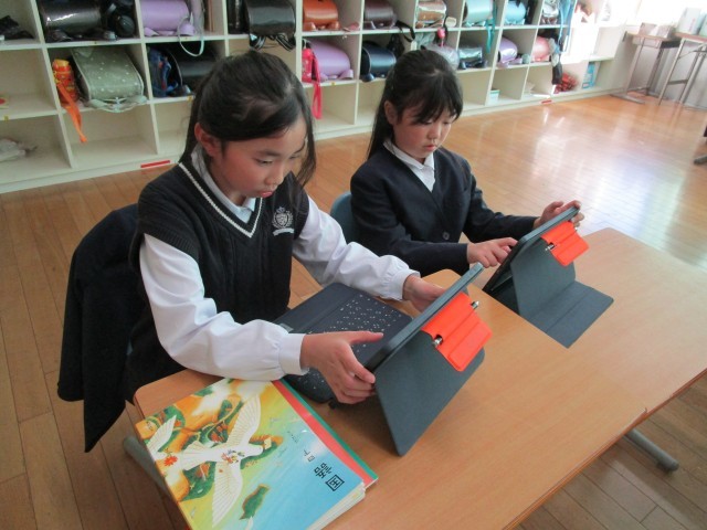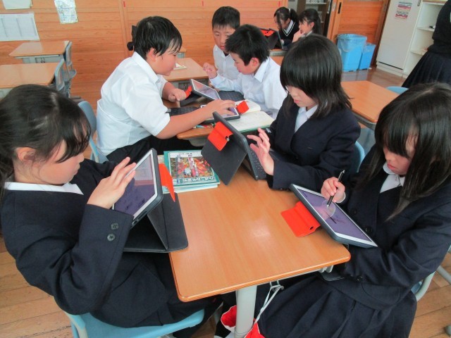 4年生の国語です。福島県の伝統工芸品について、リーフレットにまとめるための資料集めをしていました。