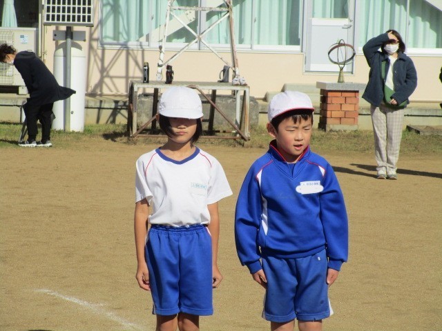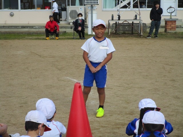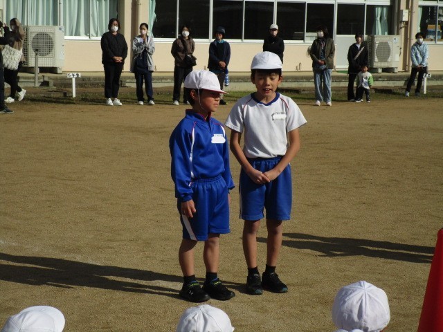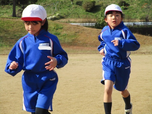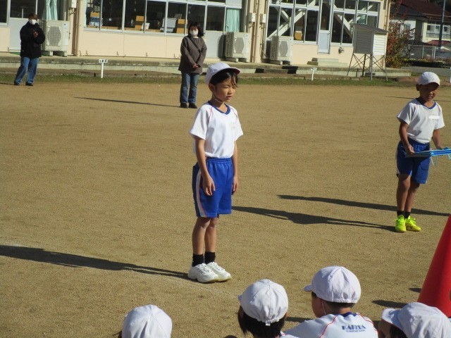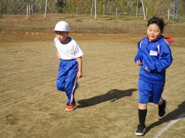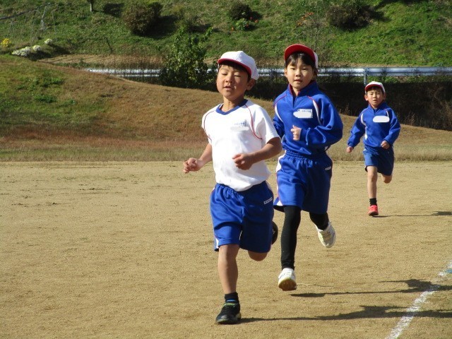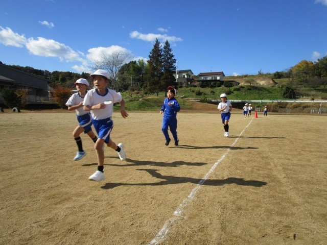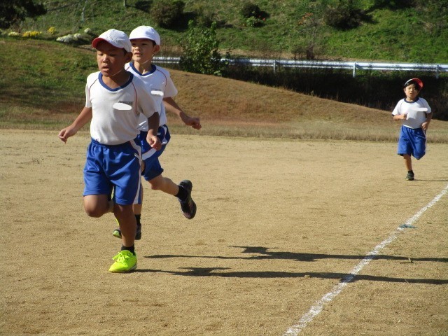 低学年の持久走記録会の様子です。3分間自分のペースで走っていました。