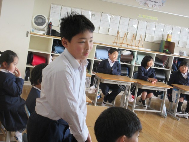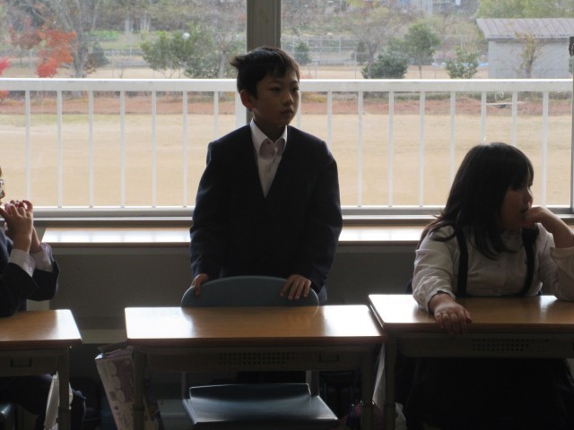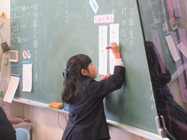 3年生の学活です。学級会をやりました。司会、書記と役割分担をして、話し合いをしていました。