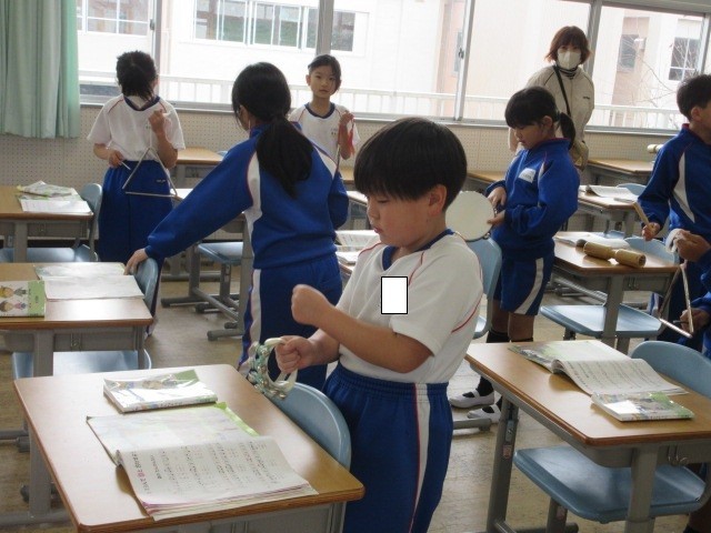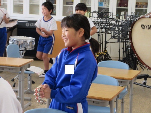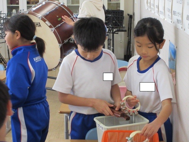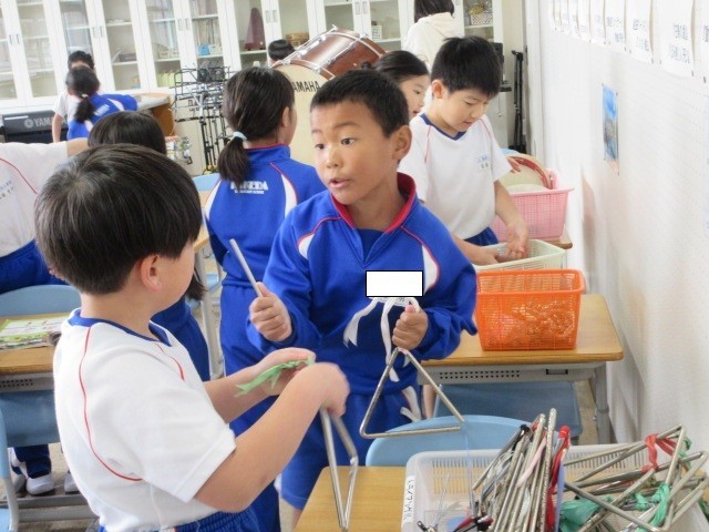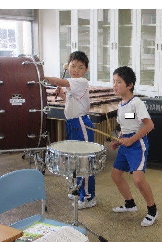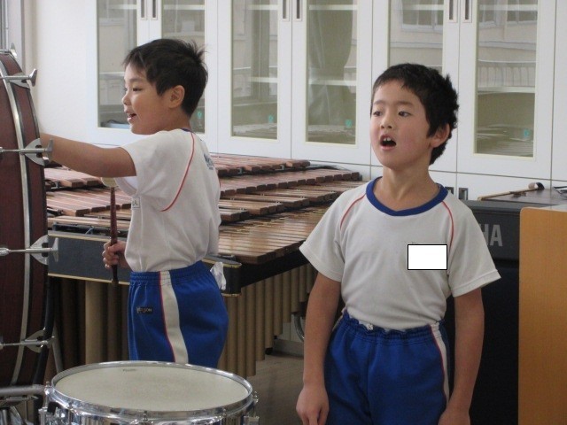 歌に合わせて、いろいろな打楽器でリズムを打ちました。