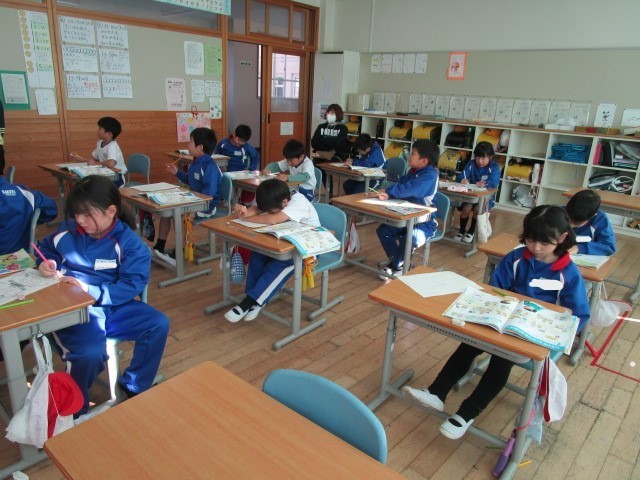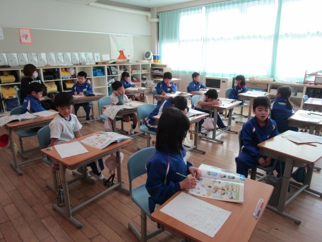 1年生の生活です。お家では、どんな仕事を誰がやっているのかを振り返っていました。