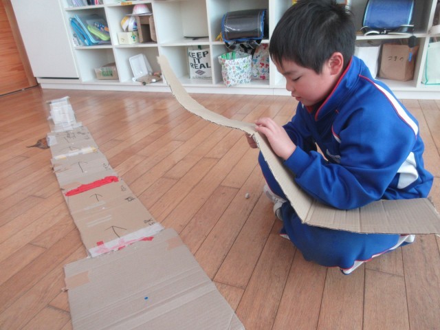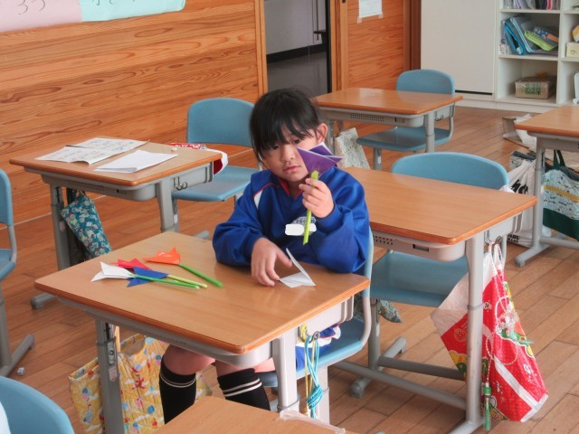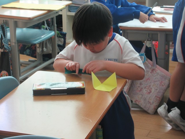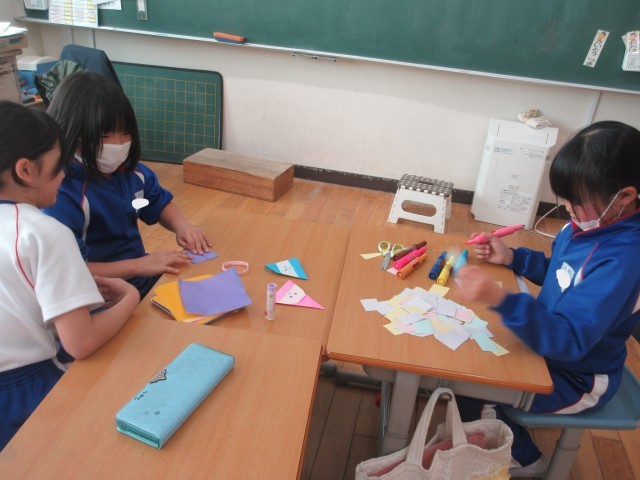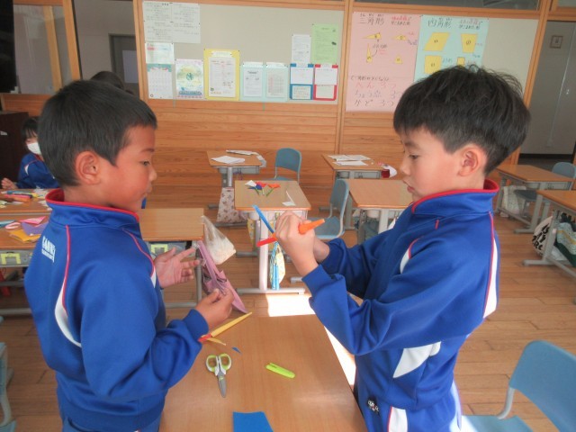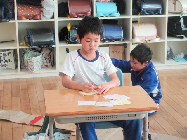 2年生は、1年生を迎えて今度行う、おもちゃまつりの準備をしていました。