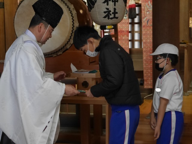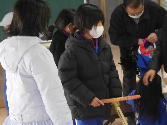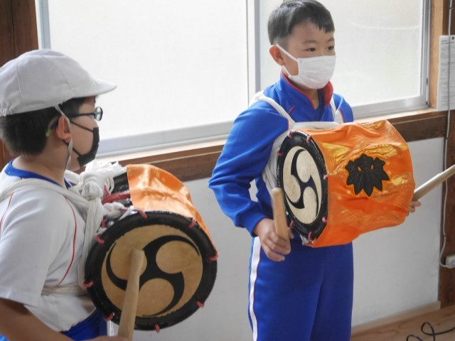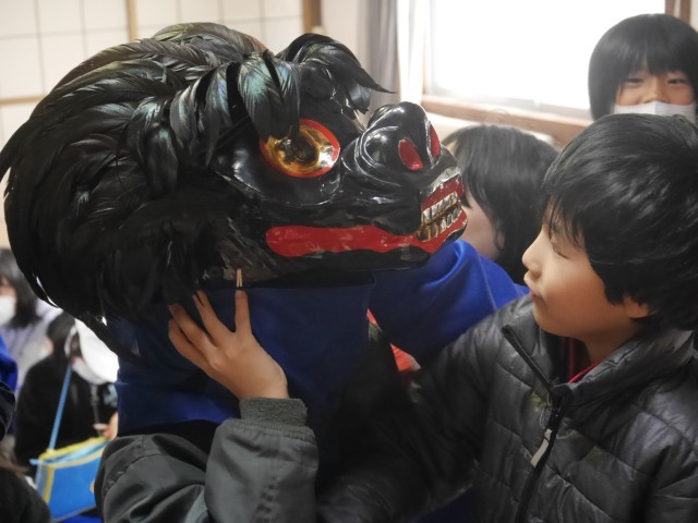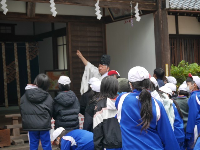 4年生は霊山神社に見学に行きました。霊山の歴史について話をしてもらったり、獅子舞や太鼓の体験をさせていただいたりしました。