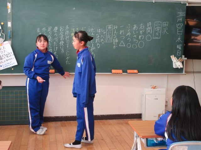 2学期の登校の反省や冬休みの生活について話し合いました。