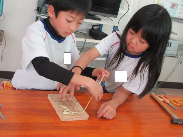 毛糸を使ってコースを作り、ビー玉を転がすそうです。