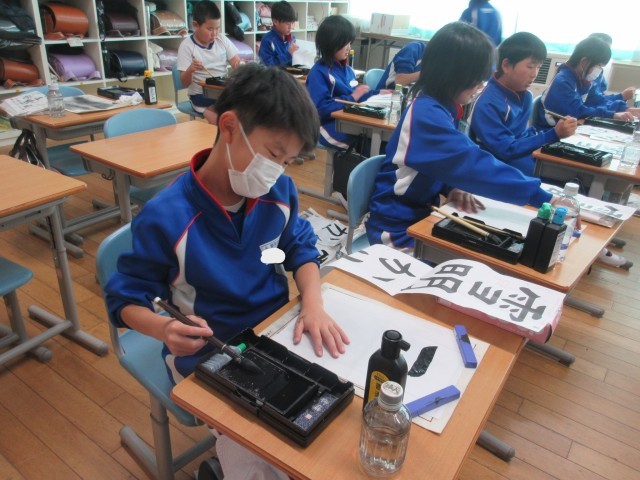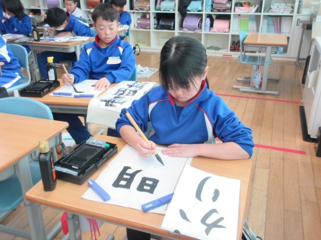 4年生の書写です。書き初めで書く「雪明かり」の文字を練習しました。