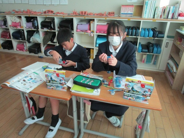 6年生の理科です。つくった電気をためて、ためた電気は何に変えて利用できるか実験をしました。